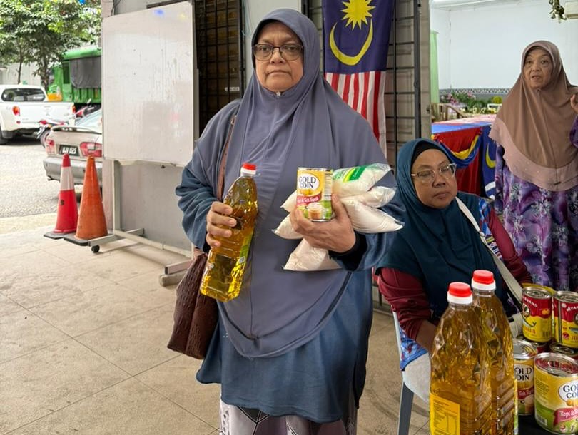 Ayuh warga Kampong Bharu, jom kumpul mata ganjaran untuk dapatkan barangan makanan asas keperluan.